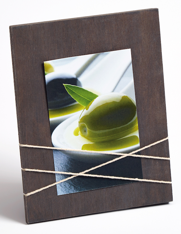 - Holz- Portraitrahmen mit Kordel-Applikation als Bildhalterung in 3 Farben in blau, braun und rot